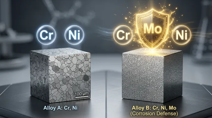 304 和 316L 最直观的区别,在于一种稀有金属——钼(Molybdenum)。