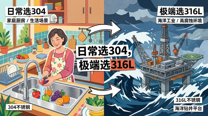 如果你只是买个煮面条的锅,或者做个室内的楼梯扶手,选用 304 是最明智的。它强度够、好加工、便宜且安全。买 316L 纯属性能过剩。但如果你住在海边想装个防盗网,或者你需要生产接触药液的设备,请务必咬牙上 316L。这时候省下的钱,会在未来几年里变成除锈的泪水和设备报废的巨亏。